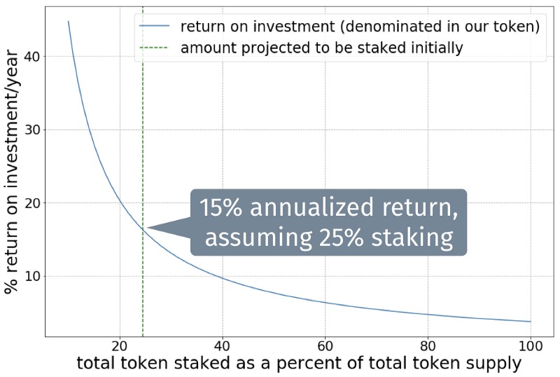 根据现阶段的模型,Harmony的早期Staker节点将享有15%的年化收益率。模拟显示在年通货膨胀率在2.5%时,Staker既可以有营收。同时,我们在和几家Staking-as-a-Service公司(Chorus.One, Blockdaemon and Staked.us)讨论合作方案。