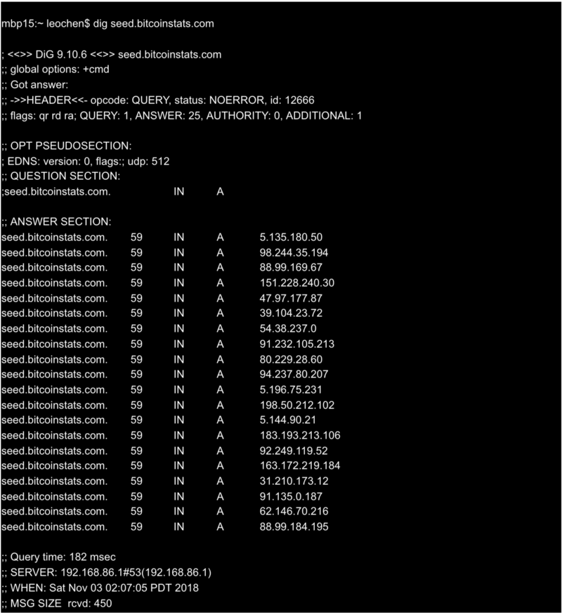 The bitcoinstats.com domain is registered by Dynadot, LLC on January 15th, 2011. The following example lists a few well-known bitcoin nodes.